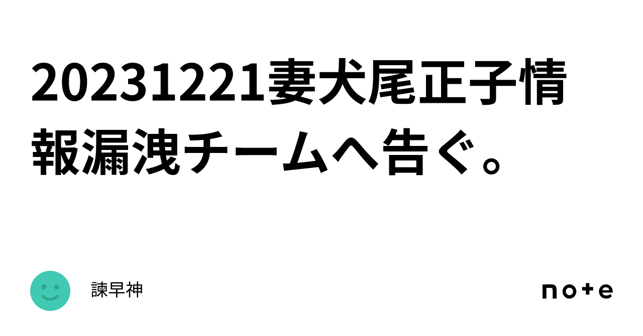 20231221妻犬尾正子情報漏洩チームへ告ぐ。|諫早神