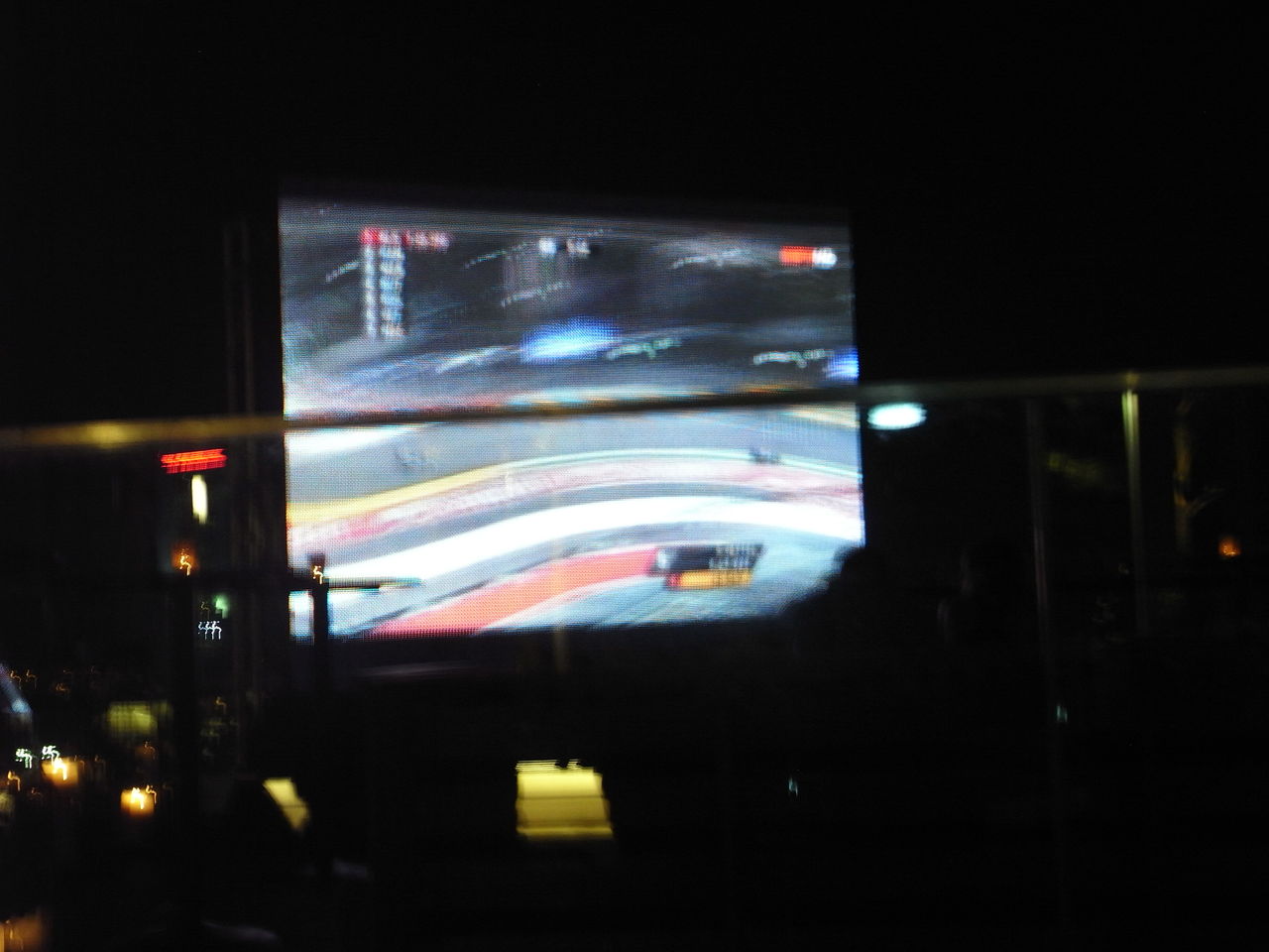プールのテラスに設置された大迫力のスクリーンで観戦したよ。