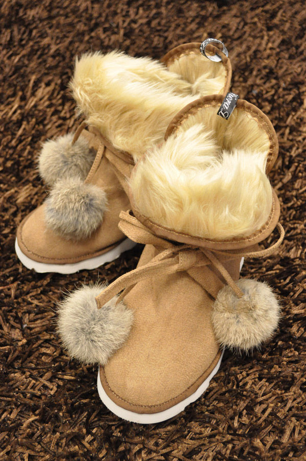 ポンポンつきブーツは中がふわふわで気持ち良さそうです*