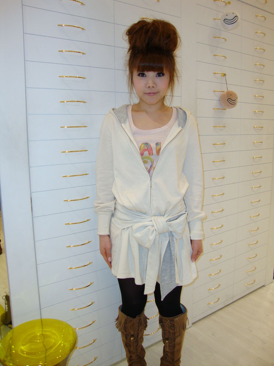 実際のコーディネイトをスタッフの佐古さんに着てもらいました。