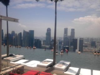 「マリーナ・ベイ・サンズ」で、屋上のプールからの眺めは