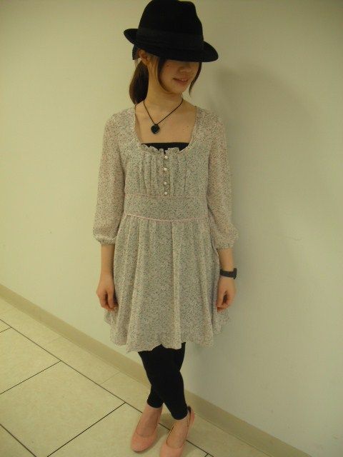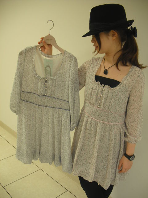 シフォン素材が春らしいワンピースです。