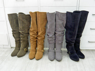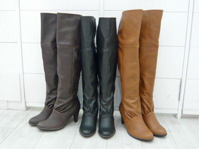 足元のギャザーがポイントのニーハイブーツ、もちろん折り返しても履いて頂けます!ヒールも高すぎないので疲れ知らずの一足なのでは??
