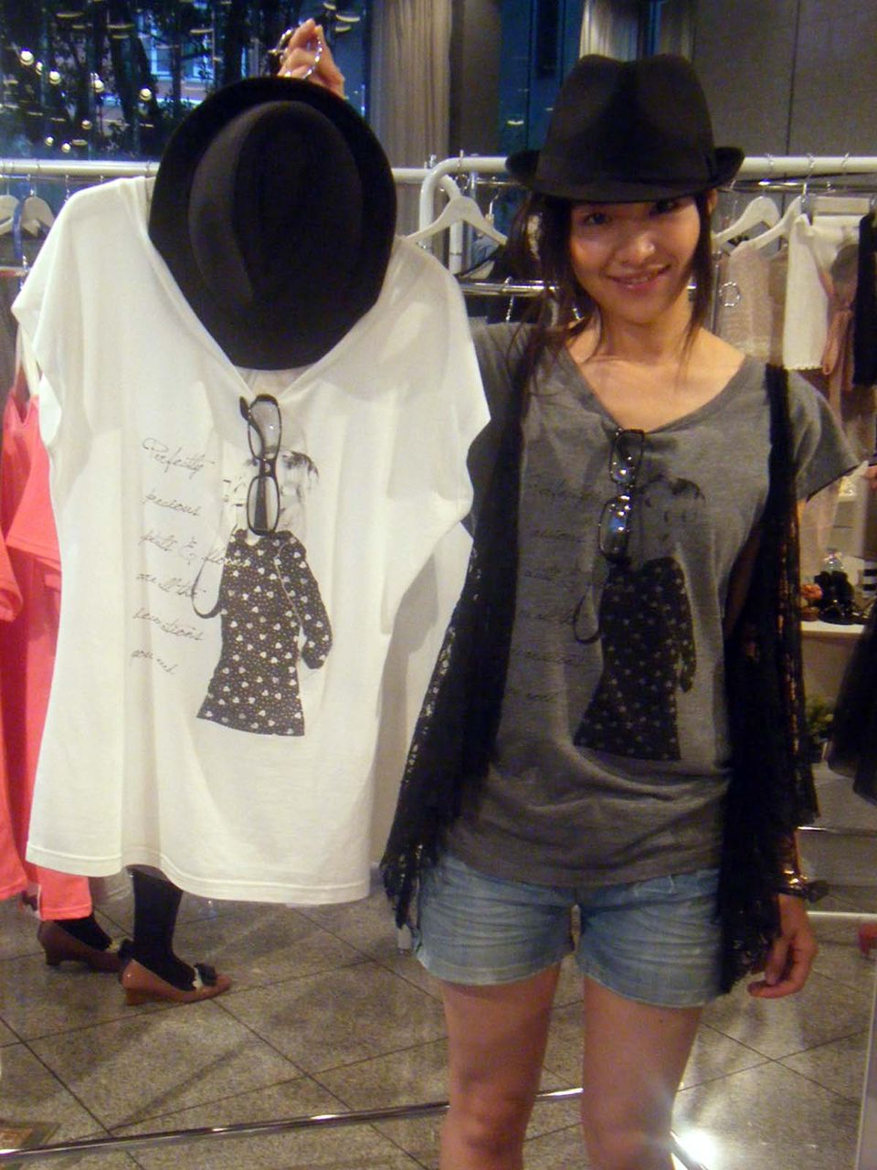 なんとプリントT・黒ぶちメガネ・ハットの3点セットです。