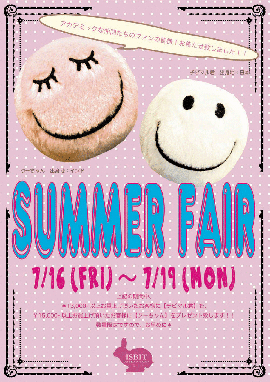 !SUMMER FAIRのお知らせ! | ISBIT DAIKANYAMA