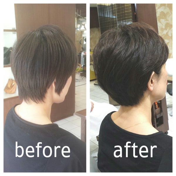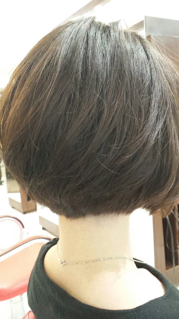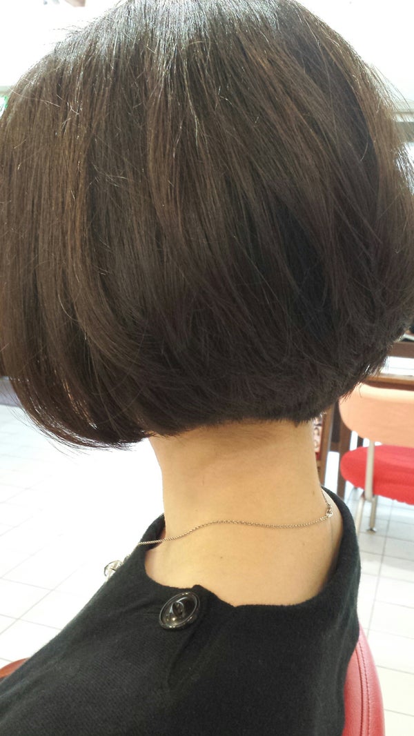 襟足の長さをカットして髪の集まるところ(重心)を低く設定させていただきました。