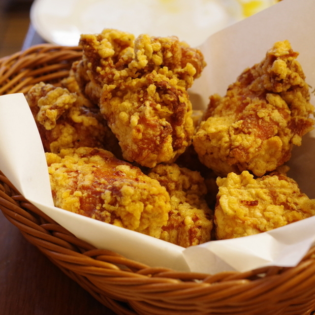 から揚げは骨付きのほうで。揚げたての超熱々のから揚げが出てきます。火傷に注意です♪