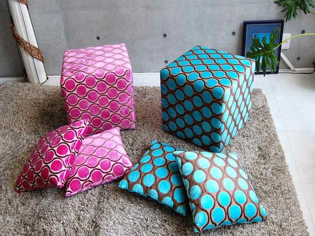こちらは目にも鮮やかなドット柄のオリジナルキュービックスツール、”Marbles/マーブル”。