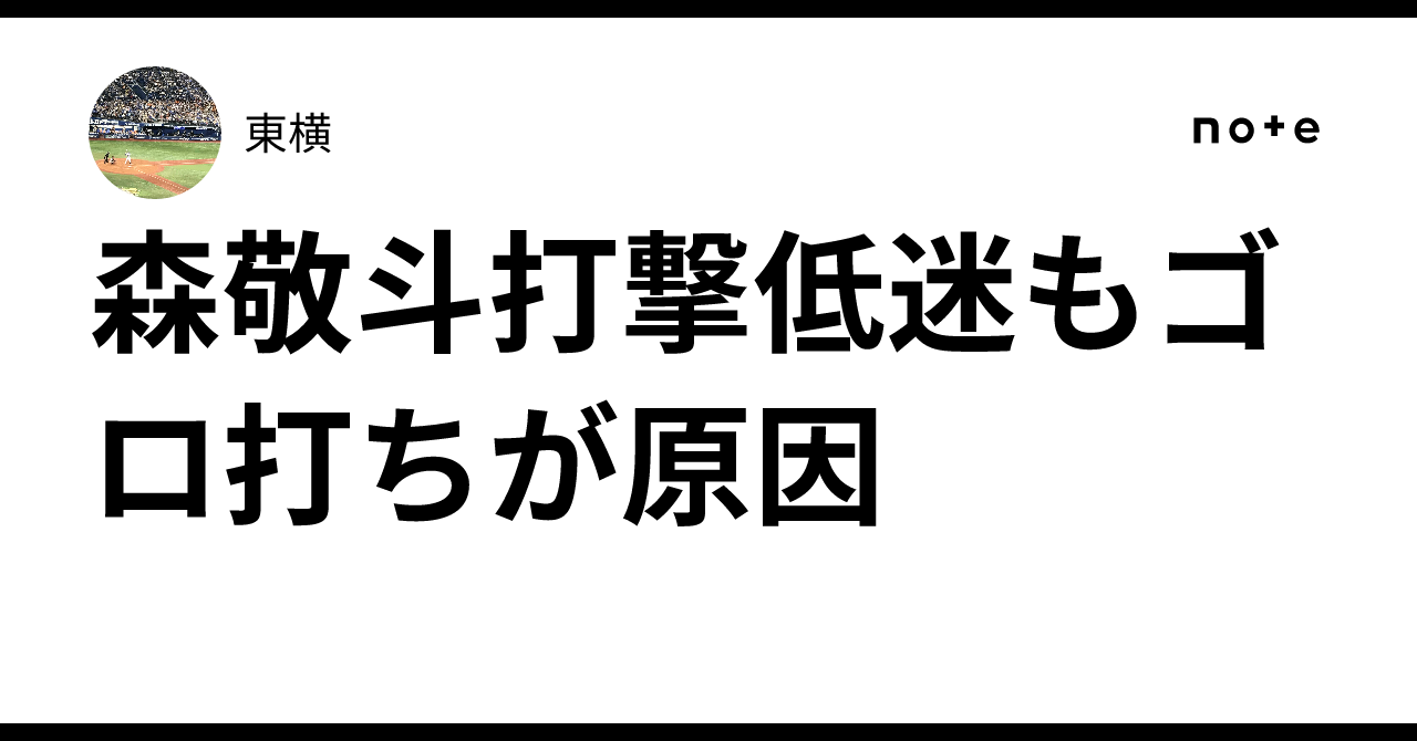 横浜DeNAベイスターズ 森敬斗の不調はゴロ打ち打撃横浜DeNAベイスターズの森敬斗選手はゴロ打ちを心がけて打撃を崩しました。 叩き付けて打つという非科学的野球の弊害を書きました。 森敬斗打撃低迷もゴロ打ちが原因|東横お断り 今回の記事の中には一部の方に不快な印象を与える記述がございますことを予めお断り申し上げます。あくまで1ファンの私見ですので科学的根拠や歴史的史実に裏付けられた記述でないことをお詫びいたします。 25年シーズン前に打撃フォームを変えた森敬斗の悲劇 24年9月以降ポストシーズンで活躍した森敬斗が足を活かしてゴロで出塁する打撃フォームに変更して25年…note.com