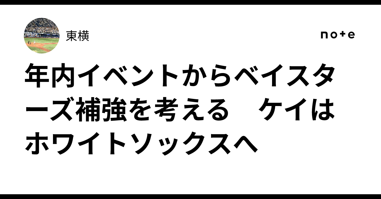 年内イベントからベイスターズ補強を考える ケイはホワイトソックスへ|東横お断り 今回の記事の中には一部の方に不快な印象を与える記述がございますことを予めお断り申し上げます。あくまで1ファンの私見ですので科学的根拠や歴史的史実に裏付けられた記述でないことをお詫びいたします。 MLBウィンターミーティング MLBの30チームおよび160を超すマイナーリーグベースボール(MiLB)の全チーム運営関係者らが一堂に会し、来季以降のリ…note.com