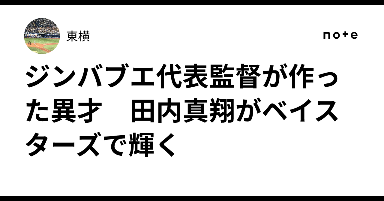 横浜DeNAベイスターズ 田内真翔はジンバブエ代表監督が作った異才横浜DeNAベイスターズの田内真翔の成長が著しいです。 ジンバブエ代表監督の堤氏がおかやま山陽監督として育てた異才。 連動性抜群です。 ジンバブエ代表監督が作った異才 田内真翔がベイスターズで輝く|東横お断り 今回の記事の中には一部の方に不快な印象を与える記述がございますことを予めお断り申し上げます。あくまで1ファンの私見ですので科学的根拠や歴史的史実に裏付けられた記述でないことをお詫びいたします。 逆立ち指導する高校野球監督 堤尚彦が指導するおかやま山陽高校 ベイスターズで高卒2年目の田内真翔がブレイクしそうです。田内を指導したのがおかやま山陽高校…note.com