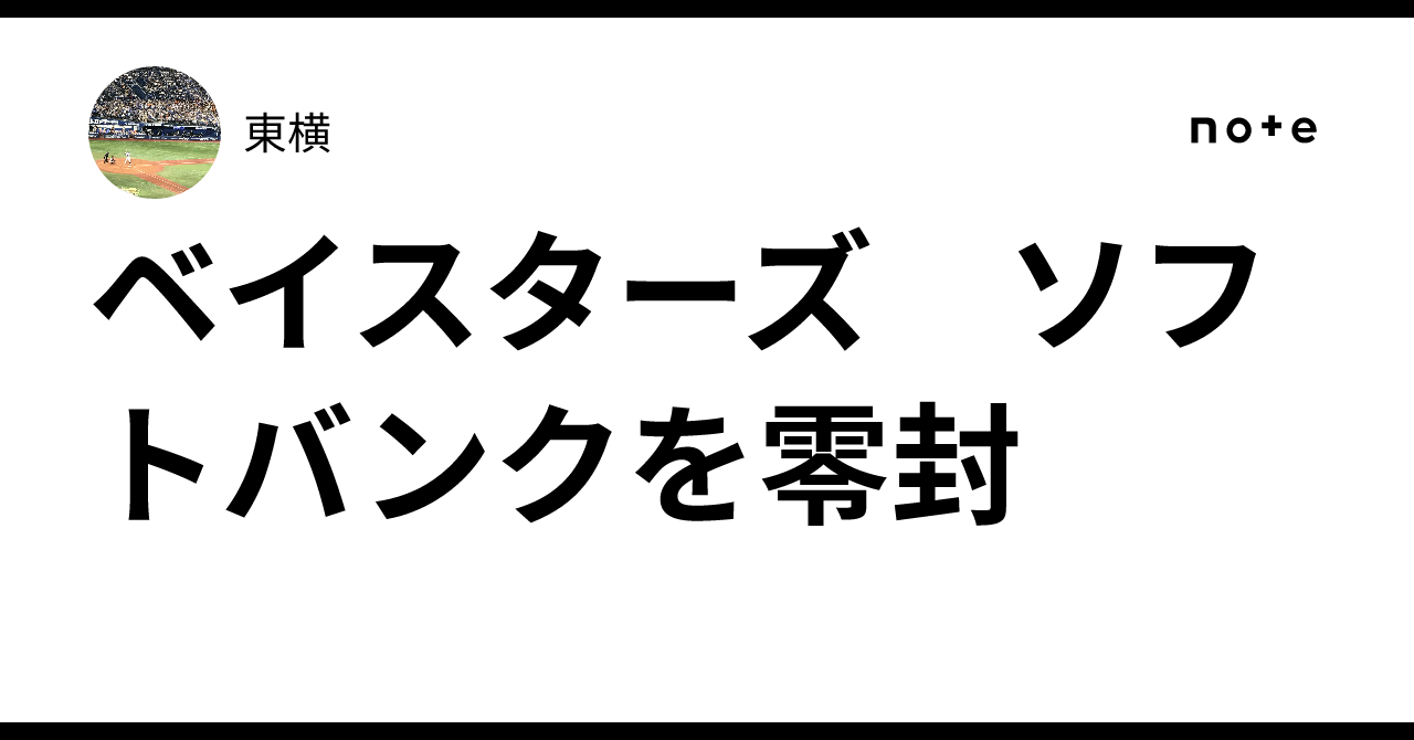 横浜DeNAベイスターズ 福岡ソフトバンクホークスを零封 横浜DeNAベイスターズが福岡ソフトバンクホークスに5-0勝利。 深沢好投 二軍もハヤテに6-0勝利 石田裕6回零封 先発リリーフ投手陣がギアを上げてきました ヒュンメルは満塁弾 noteに書きました。 ベイスターズ ソフトバンクを零封|東横お断り 今回の記事の中には一部の方に不快な印象を与える記述がございますことを予めお断り申し上げます。あくまで1ファンの私見ですので科学的根拠や歴史的史実に裏付けられた記述でないことをお詫びいたします。 投手陣に明るい兆し 横浜DeNAベイスターズは福岡ソフトバンクホークスに5-0で勝ちました。 この日のスタメンは御覧の通りです。 1番中堅 梶原 2…note.com