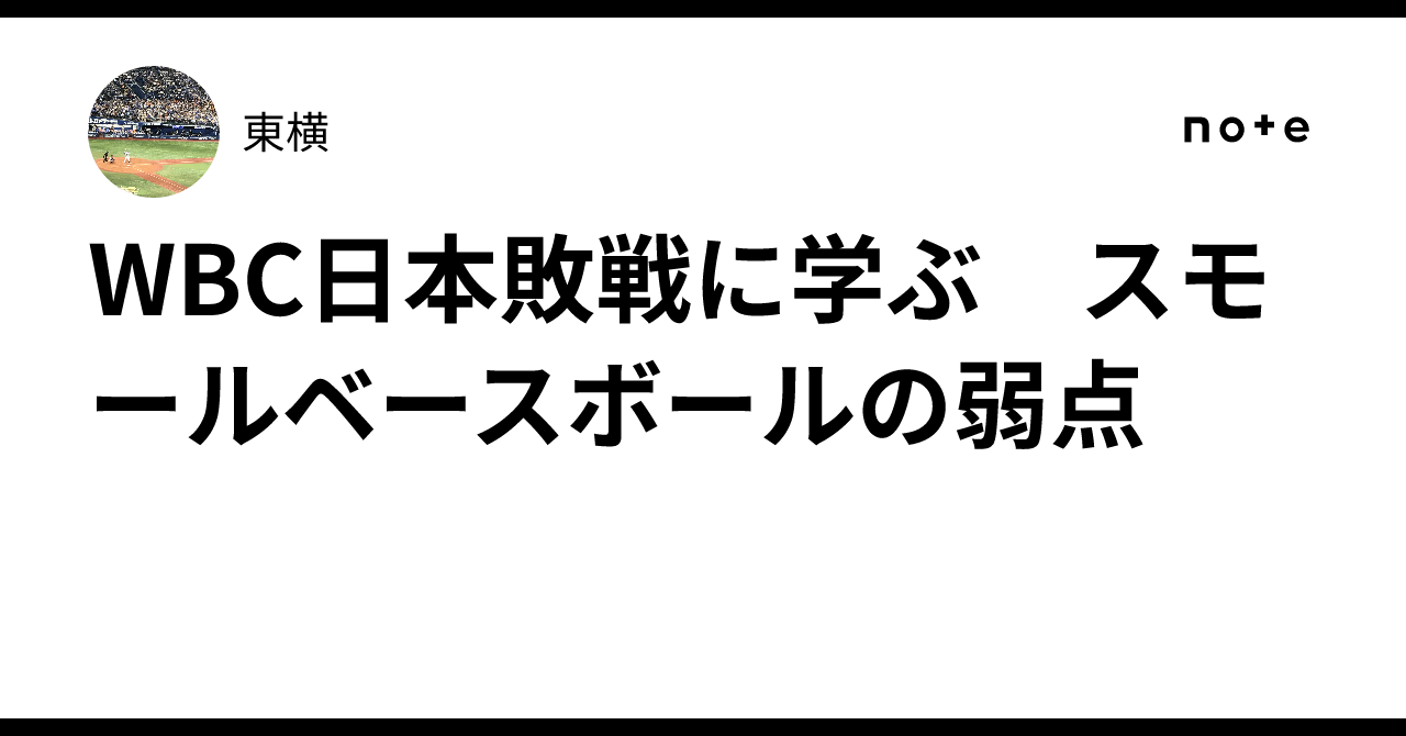 侍ジャパン WBC敗戦に横浜DeNAベイスターズは何を学ぶべきか?WBC準々決勝で侍ジャパンがベネズエラに敗戦。 パワーベースボールにスモールベースボールは勝てないと実証されました。 横浜DeNAベイスターズもこの敗戦に学ぶべきでしょう。 WBC日本敗戦に学ぶ スモールベースボールの弱点|東横お断り 今回の記事の中には一部の方に不快な印象を与える記述がございますことを予めお断り申し上げます。あくまで1ファンの私見ですので科学的根拠や歴史的史実に裏付けられた記述でないことをお詫びいたします。 空中戦にこそ野球の正解がある WBCの準々決勝で日本はベネズエラに3本のホームランを打たれて5-8で敗戦しました。日本は大谷翔平のホームラン1本。世界の…note.com