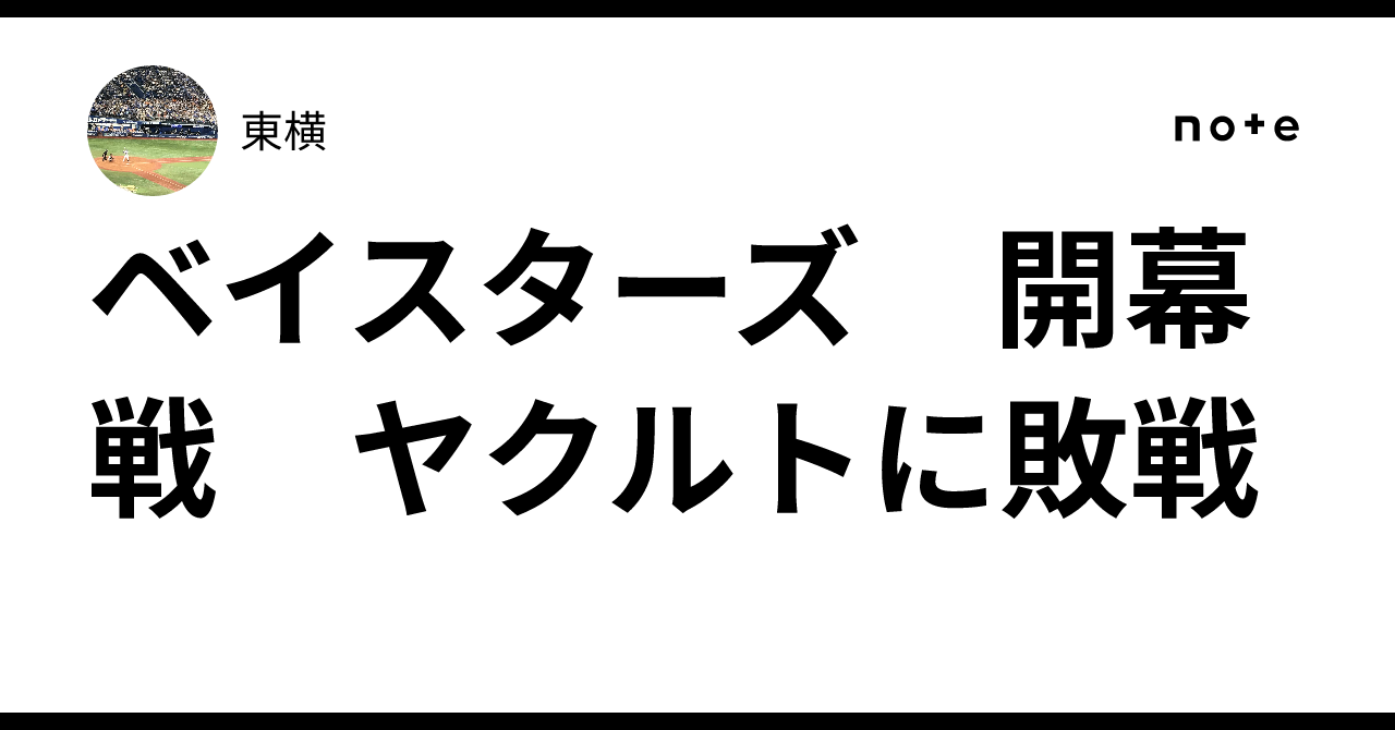 横浜DeNAベイスターズ 東京ヤクルトスワローズに敗戦 プロ野球開幕戦プロ野球 いよいよ開幕 横浜DeNAベイスターズは東京ヤクルトスワローズに2-3で敗戦しました。 東が2本塁打打たれました。 ベイスターズ 開幕戦 ヤクルトに敗戦|東横お断り 今回の記事の中には一部の方に不快な印象を与える記述がございますことを予めお断り申し上げます。あくまで1ファンの私見ですので科学的根拠や歴史的史実に裏付けられた記述でないことをお詫びいたします。 東京ヤクルトスワローズとの開幕戦 横浜DeNAベイスターズは3月27日東京ヤクルトスワローズとの開幕戦2-3で敗戦しました。 ベイスターズのスタメンは…note.com