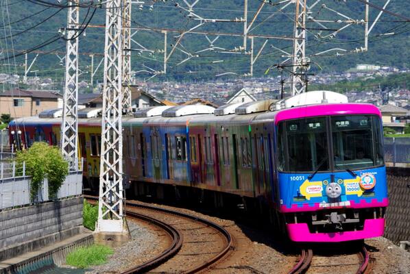 【 #日刊鉄道写真 】宇治線で運転中の京阪10000系「きかんしゃトーマス号」。 pic.twitter.com/yNVjsKEnsZ