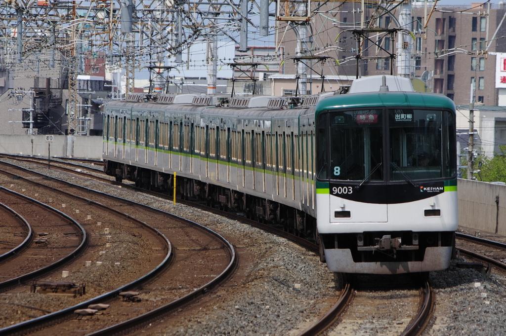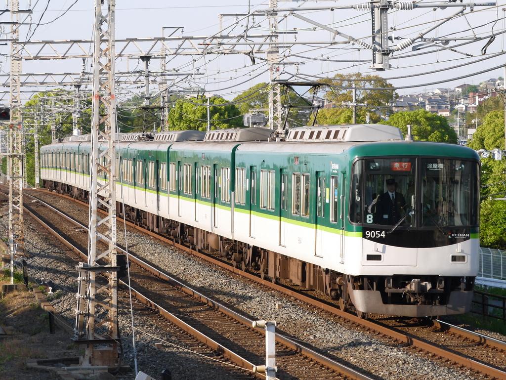 【 #日刊鉄道写真 】京阪9000系による昼間の特急。ロングシート車による昼間の特急はほとんどありませんが、ノンストップ快速特急「洛楽」が運転されるときはロングシート車による特急が多くなります。 pic.twitter.com/Nz2fIJqzsj