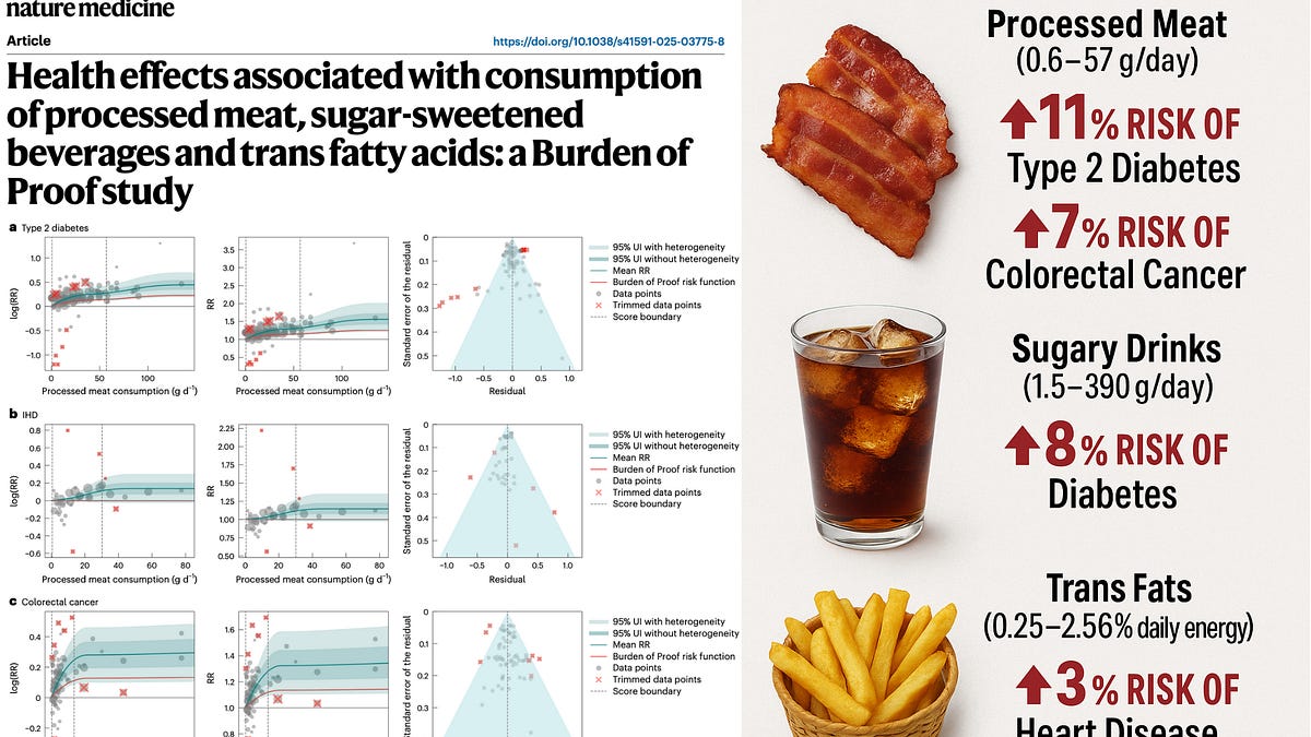 Nature Medicineに掲載された主要な新しい研究は、加工肉、砂糖入り飲料(SSB)、トランス脂肪酸(TFA)という3つの一般的な食事成分が慢性疾患リスクにどのように影響するかを検証しています。