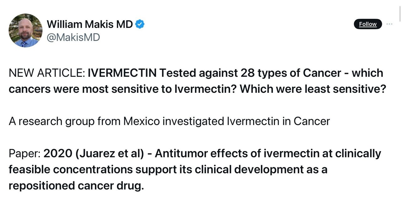【ウイリアムマキス医師】 イベルメクチンは人間への投与量2mg/kgで、イベルメクチンはさまざまな抗がん効果を発揮する