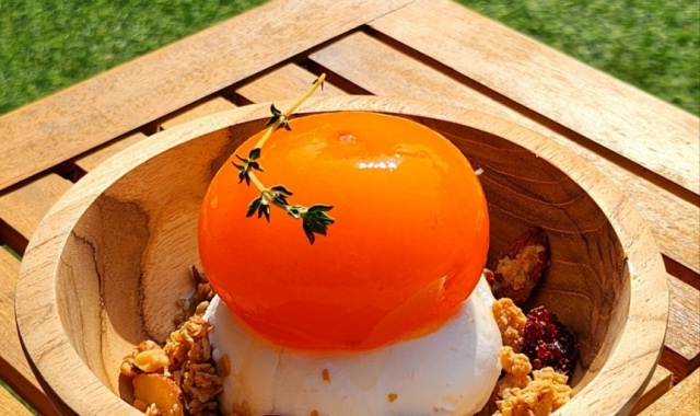 奥のヨーグルトは、柿が丸ごとのってるヨーグルトです❤️