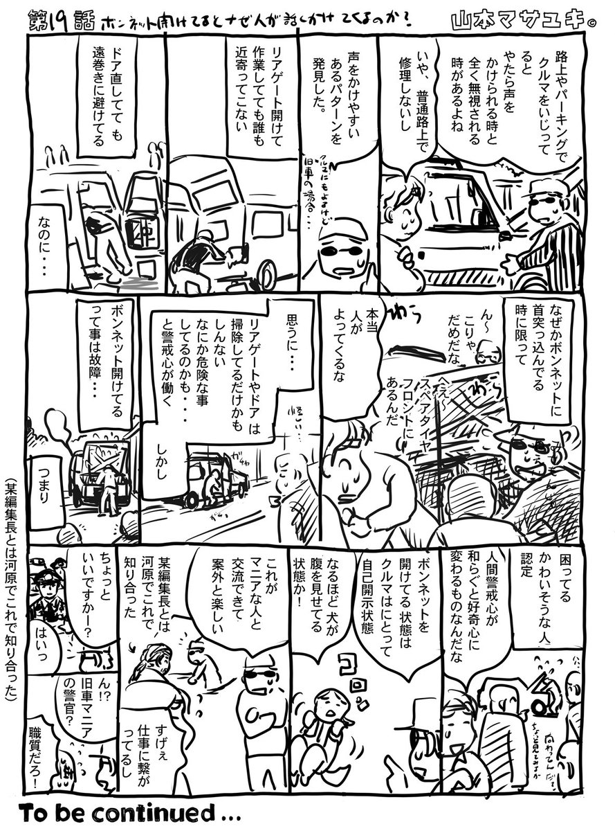 webガタピシ車/19話「ボンネットを開けてると何故人が話しかけてくるのか?webガタピシ車/19話「ボンネットを開けてると何故人が話しかけてくるのか?」クルマ好きなら単純に話のきっかけとして声かけやすいみたいですね。クルマ友達の欲しい人は駐車場でやってみよう! ウズラコーヒーはこちらで買えます。http://j36.base.ec