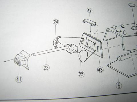 おかげで砲塔正面パーツ(43)に出っ張っている取り付けガイドが全く役に立ちません!