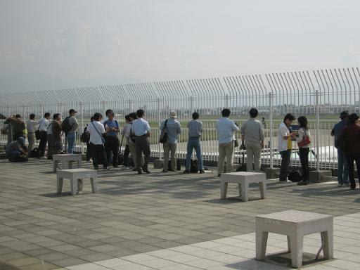 でかい一眼レフ持ってイヤホン着けたおじさま達が。地方空港なんでこの程度ですけどね。