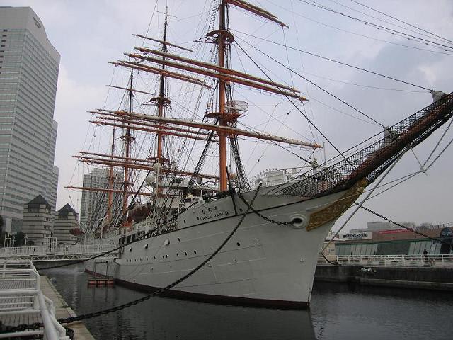 座ったままなのも結構疲れるので、昼休みに散歩がてら日本丸を見てきました(クリックで画像拡大します)。