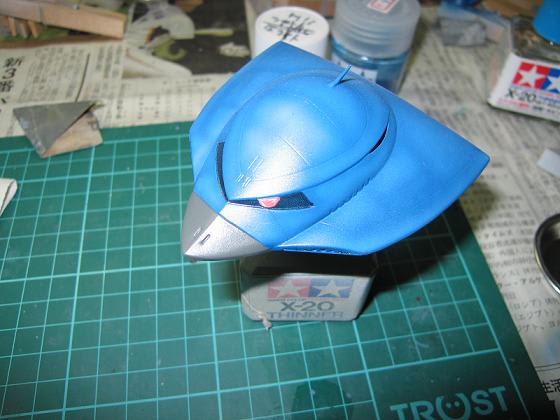 BM水祭り! グラブロ製作中(その9)みなさんこんばんは。今日のグラブロは瞳を入れました。タミヤエナメルを使用。筆塗りです。まず白と赤でピンクを作ってモノアイを塗ります。このままではのっぺりしてるので、薄く溶いた白をムラムラに乗せます。筆で塗料を置く感じですね。それが乾かないうちに、クリアオレンジを爪楊枝の先に付けて、ツンツンと。目の中の星を描く感じで。どうでしょう?って、画像ではよくわかりませんね。いいんです。自己満足ですから(笑