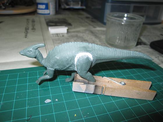 パラサウロロフス作ってマスそろそろblogのカテゴリに「プラモデル/恐竜」でも作った方がいいかな?というわけでパラサウロロフス作ってます。「水辺の恐竜」で使ったのと同じ箱の中から出てきたにも関わらず、ほんの少しですが合い悪し。パテのお世話になっております(画像の白飛びしてる部分ですね)。セメダインのエポキシパテ使用。盛ったあと、クレオスのラッカーシンナーぶっかけて馴染ませてます。しかし流石恐竜。あっと言う間に「士の字」ですな。早速ベースの心配もしなきゃならんですね。Ⅳ号は明日くらいから組もうかな~