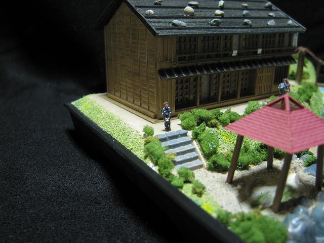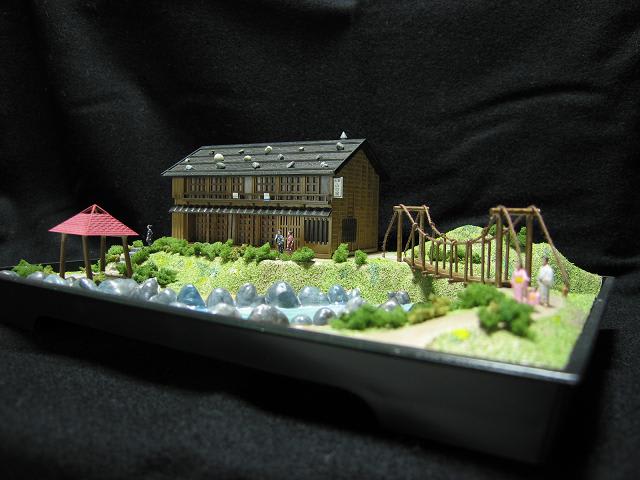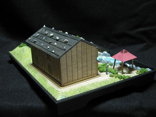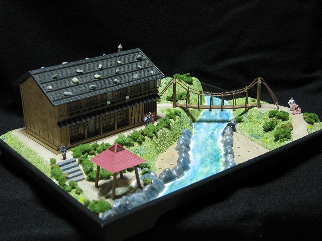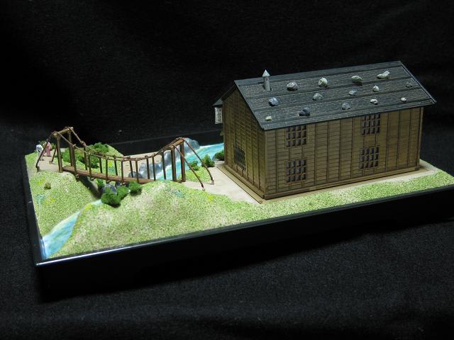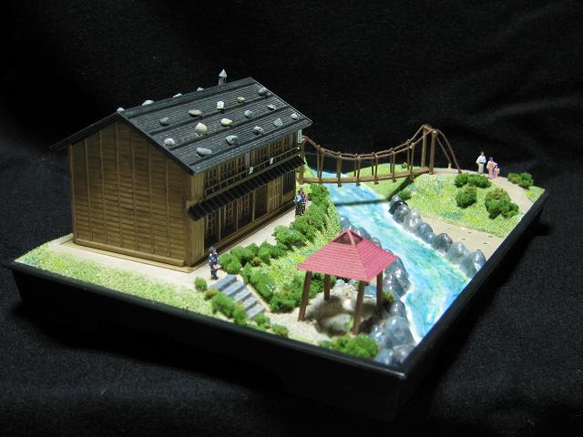 キットには水面用に波板が付いていましたが、川の形にキチンと切り出す必要があり、大変に難易度が高そうでしたのでイージーな方法に逃げました(笑
