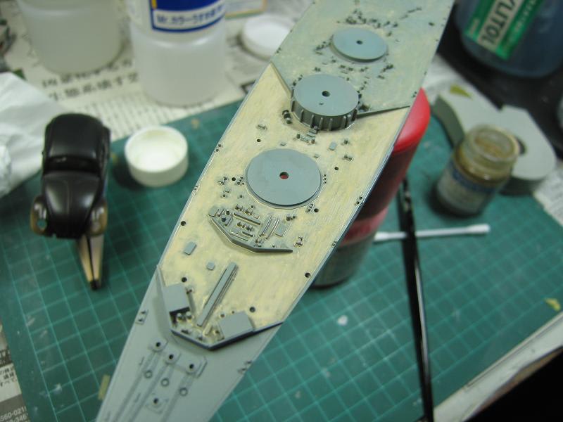 ヒーコラがんばって、甲板の前半部(全体の1/3くらいかな)が終了。