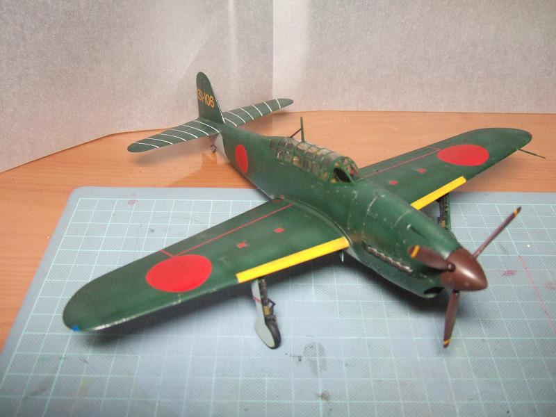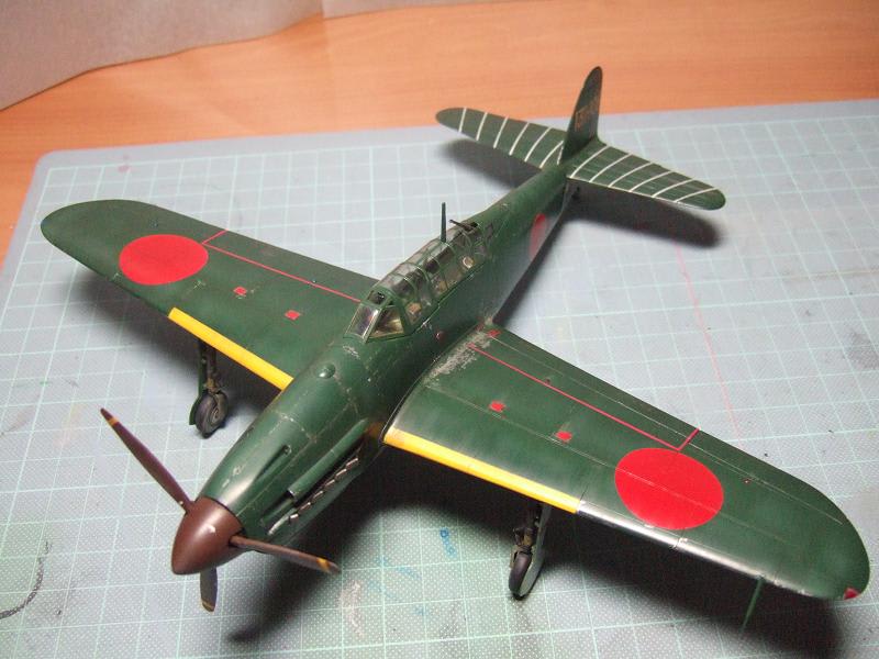 4.日の丸、翼の赤線、尾翼の白線はマスキングして塗装仕上げにしました。