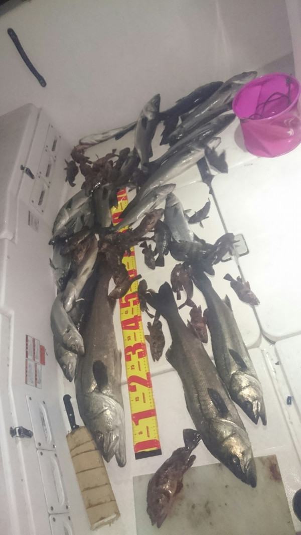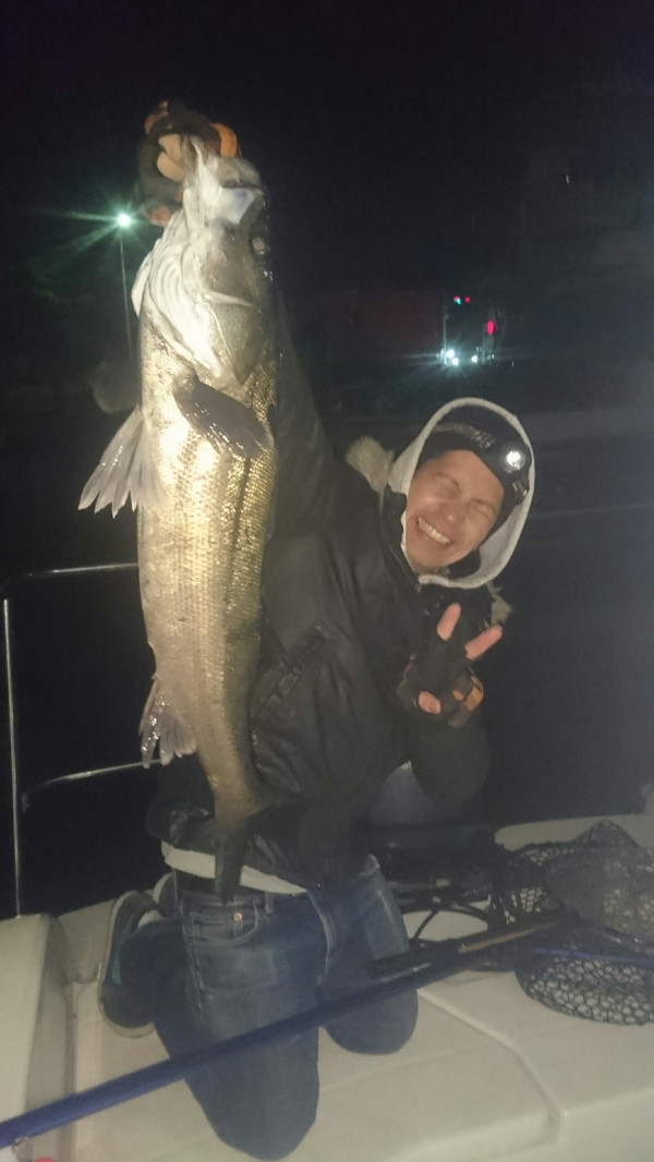 ポイント異動してやっと60㌢オーバーのシーバスが上がりましたが続かず、またまたポイント異動、ここで80㌢オーバーのランカーサイズがあがり、ぽつぽつ一人を除いて3人とも釣れました。シーバスのバイトもなくなったので、ロックフィッシュのポイントへ異動してやってみたのですが、パターンが分からずにちょっと苦戦しましたがパターンが分かればコンスタントに釣れました。そのうちロックフィッシュのタックルにシーバスがヒットしてなんとか、60㌢オーバーのシーバスをゲット、もう一人のお客様もシーバスタックルにチェンジして、シーバスゲット、ここからシーバス祭りになります。小さなテトラ地帯にシーバスが群れてて、爆釣モードになり、最初のシーバスポイントで釣れなかったお客様も、70㌢オーバーの良型のシーバスが釣れて、その後も釣れてました。