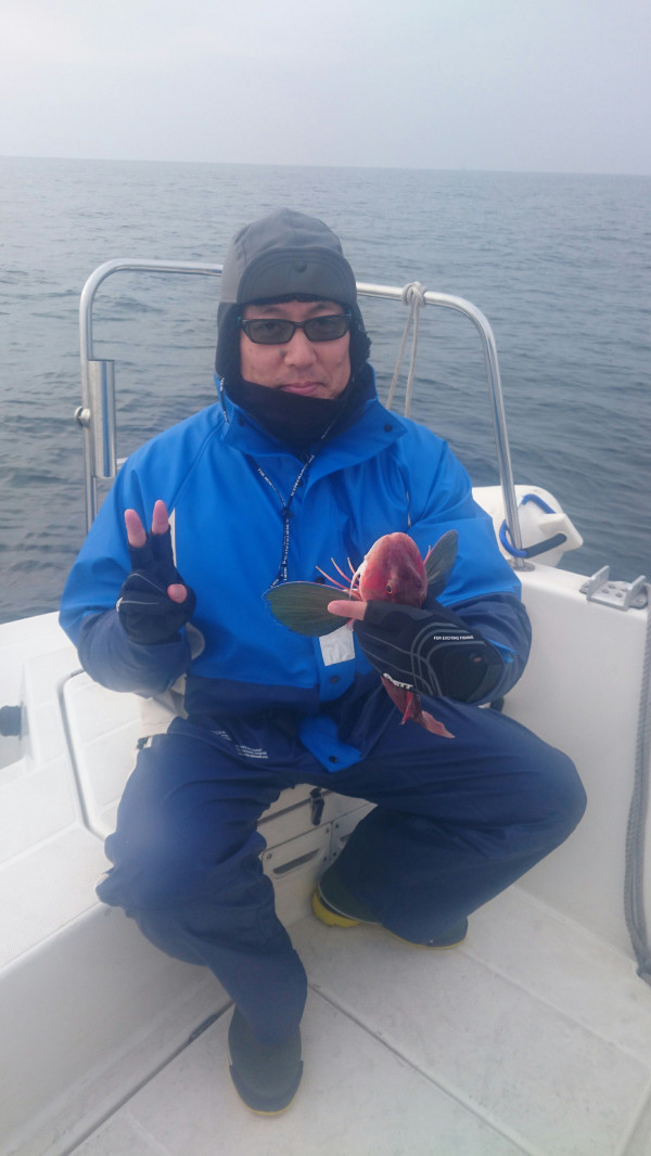 先ずは、いつものポイントを丹念に流し、1流しめからホウボウが釣れて、2流し目にも、違うお客様にカナガシラが釣れて、幸先良いスタートを切ったのですが、下げ9分辺りから中弛みになり、ぽつりとホウボウが釣れる位で、マダイが全然釣れなく、時間ばかりが流れて、帰港の時間が迫って来たので、気になるポイントが有るので、一時間延長の提案したところ、悔しいから粘ると言うことで、大きくポイント異動しました。