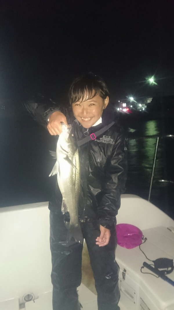 35㌢位のチーバスでしたが、念願のルアーで釣れました。その後、友達親子もルアーチェンジしたら爆発しました。