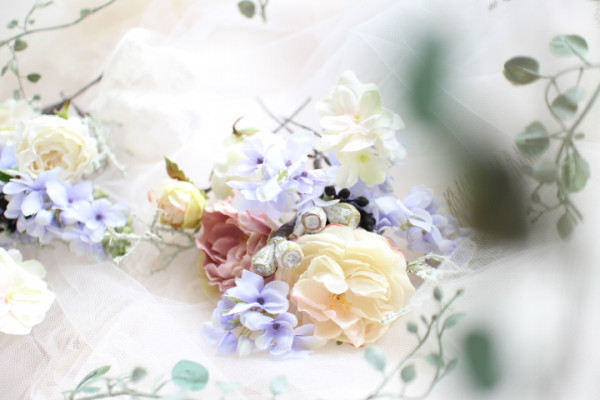 ヘッドピースはワイヤープランツのガーランドとセットにすることで