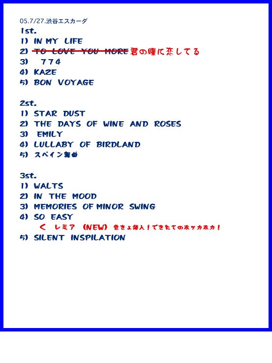 昨夜、8割くらいできた新曲を急きょ本番でテスト演奏。