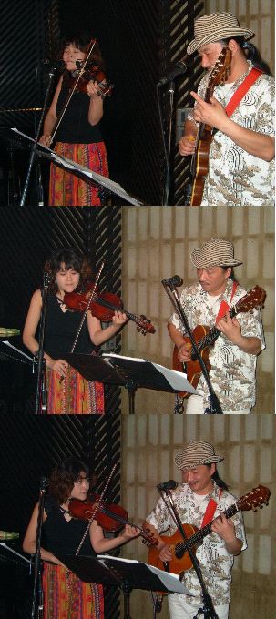 左手でシンセベース右手でピアノを弾くDeep氏。ジャンベやシンバルを叩きながらうたうEIKAちゃん。めずらしいスタイルかもしれない。2部では名曲「天国への階段」を独自なテイストでカヴァー。「花笠音頭」「アリラン」などを、これまたブルージィなテイストで演奏したのにはぶっ飛んだ(^ o ^)/