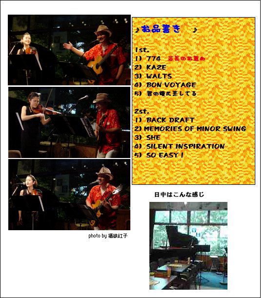 ●「to みっきぃ:バイオリン弾いているときの口がグラッペリそっくりなのを発見! to Jose:汗というか汁というか。お疲れさまです。」(♂武蔵野市)ううむ、マニアック!