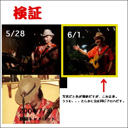さぁて寝るか!と、その前に今日もらったアンケートに目をとおしたら、ついウケて寝そびれたので、ごく一部を紹介します(^ o ^)/●「to Jose:土曜日のライブと同じ服だった...あ!キャメロットも?」(♀千葉県)検証しておきました!