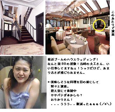 ブラックスーツとドレスのJam Strings!!(笑)今日はブライダルパーティーでの演奏。とはいえ本番のパーティーではなく試食会という催し。麻布にある某有名ハウスウェディングの結婚式場です。