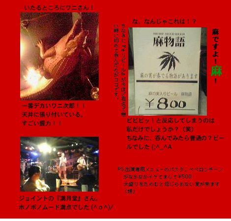 堀尾&華子さん http://www.geocities.jp/kazutakaholio/ のライブにゲスト出演というよりは乱入させていただきました。松戸市にある『若夏』は、とってもめずらしい沖縄料理のライブハウス。