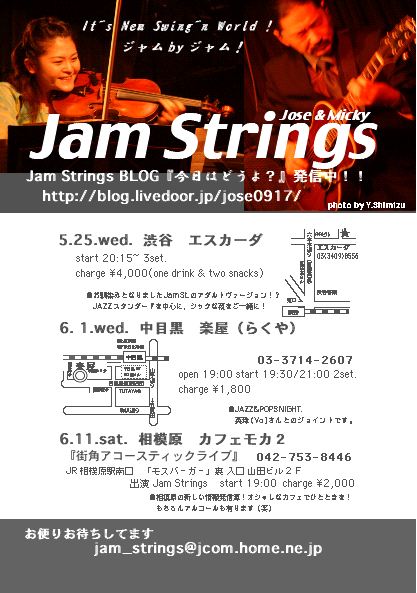 そんなこんな、プレッシャーやらナニやらをこめて『Jam Strings横浜進出!』などと銘打って自分達を励ましておりました(笑)