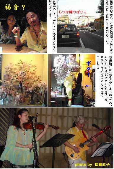 その足でライブへ、たかはしバンドの美女コーラス隊Pecoさんのバンド。ギターはJose平野氏。perc.は堀尾一家の華子さん。ゲストにはTV、映画でお馴染み「湾岸署」の斉藤さんがvo,tp という豪華な内容。客席には美女コーメンバーのカーリーが!スーパーアコギストの堀尾氏が!楽しい旅のしめくくりとなりました。