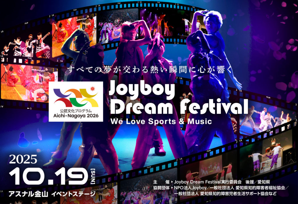 このたびJoyboy Dream Festivalが、来年愛知県で開催されるアジア競技大会・アジアパラ「Aichi-Nagoya2026公認文化プログラム」として認定していただきました。