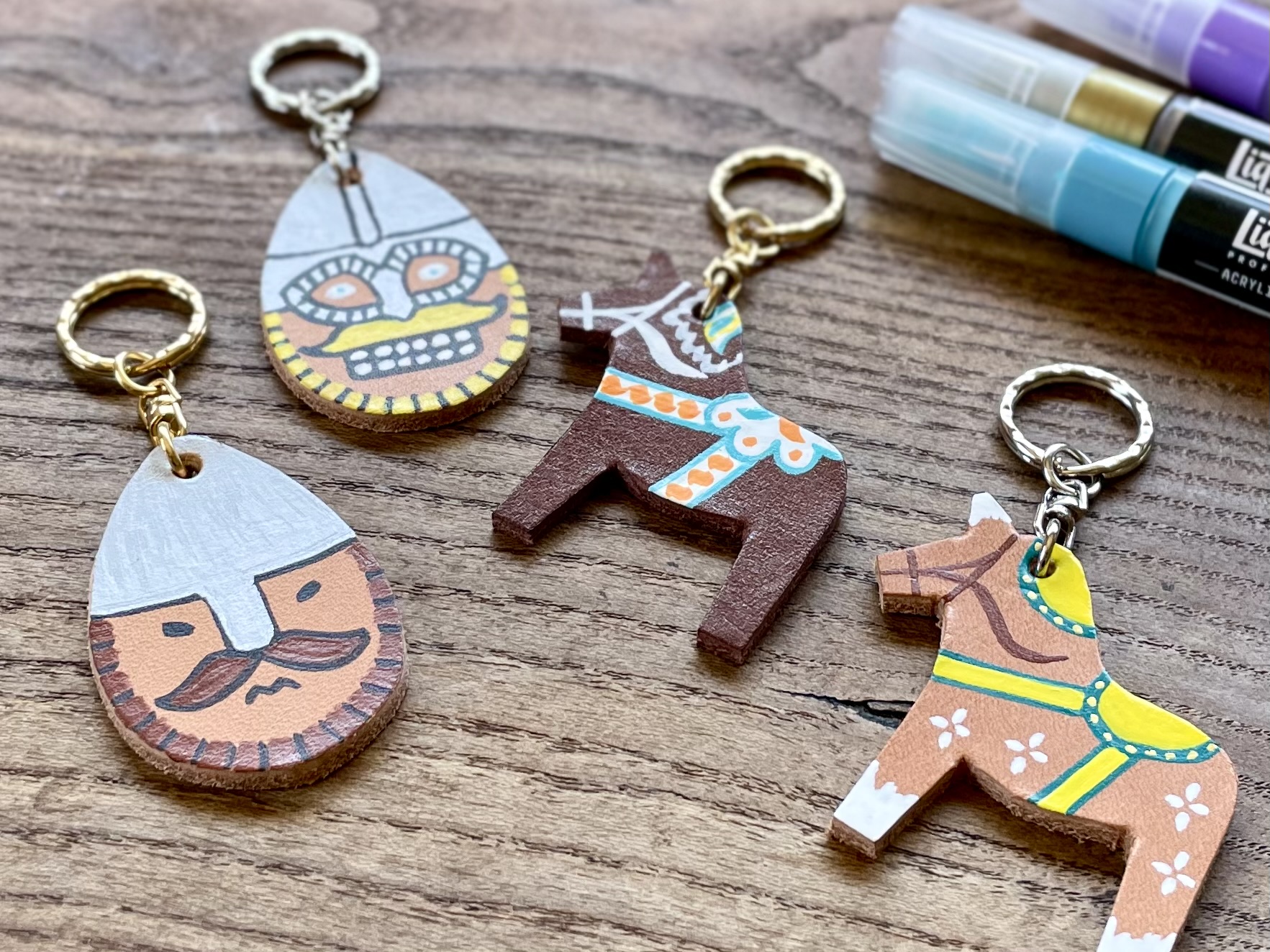 「ヴァイキングとダーラナホースを描いてレザーキーホルダーを作ろう」