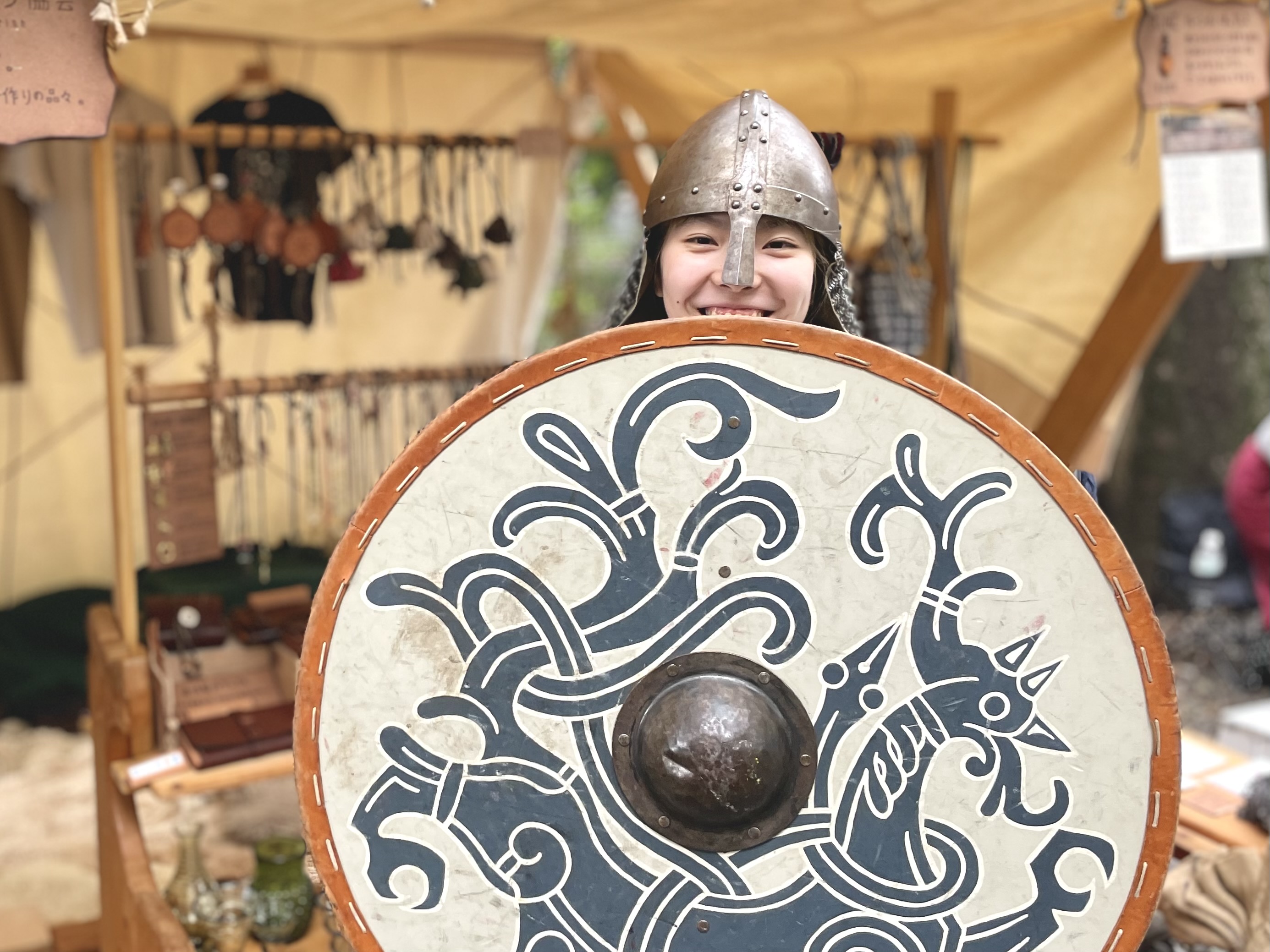 「これであなたもヴァイキング。盾かぶとの装着体験」