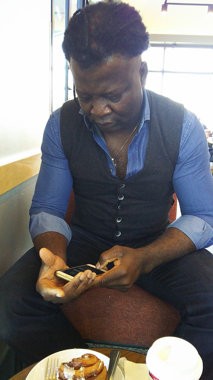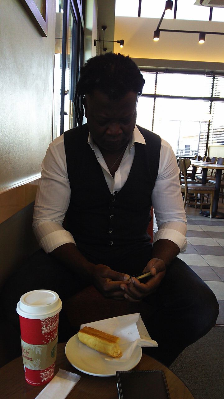 近所のスタバに行くと、ほどなく青シャツのチャールズが How are you? と入って来た。