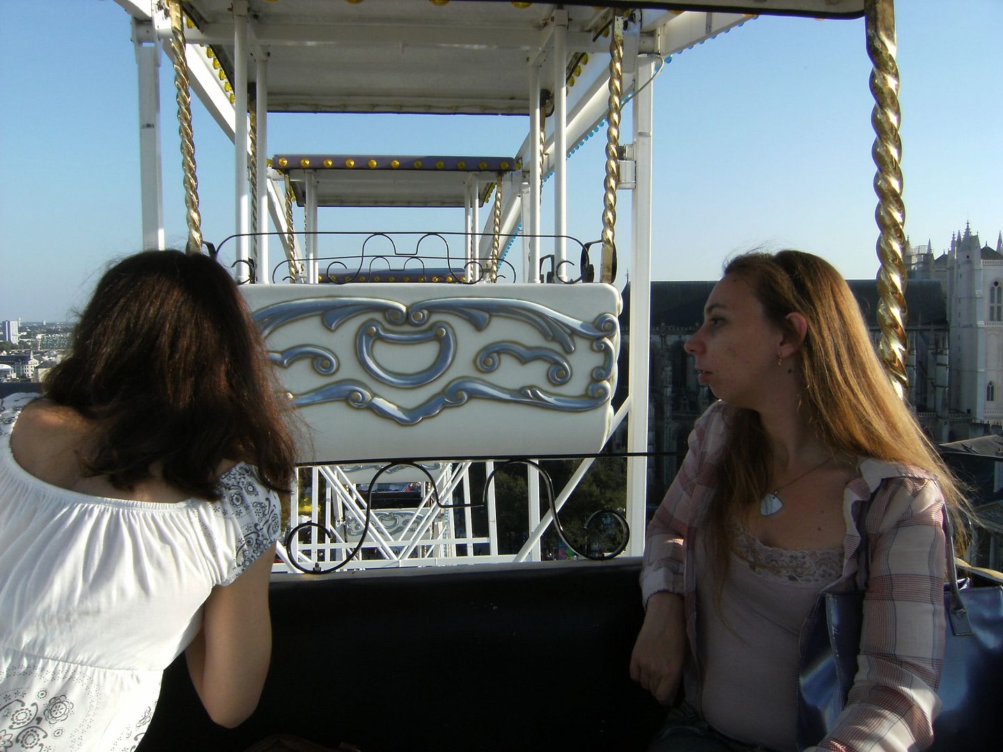 Foire最近、旅回りの遊園地がナントにあります。2人の友人と一緒に行きました。楽しみました 私たちはチュロスを食べて、おいしかったです。そして観覧車に乗りました 上から町を見て、それはおもしろかったです ナント:ナントがとても好きです 美しい町です そして…悪戯な友人はパパラッチ写真を撮りました 私は疲れているように見えます