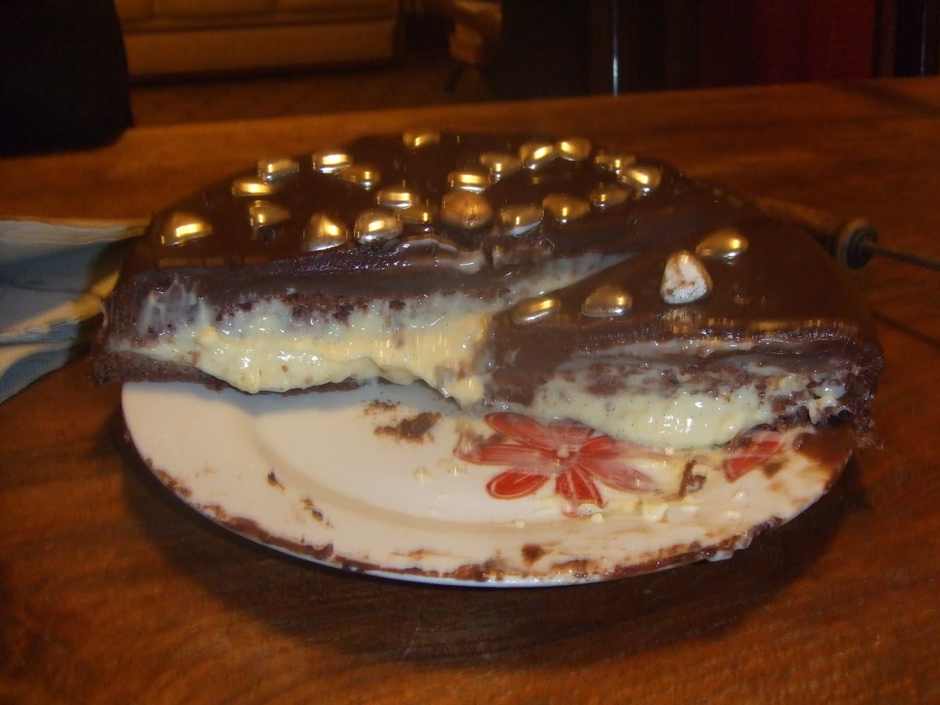 Cakes先週の土曜日に、私の弟の24回目の誕生日でした。私はケーキを担当していました ケーキに関して、弟のキーワードは「チョコレート」や「カスタード」でした。ピエール・エルメからチョコレート・ケーキの料理法を選んで、自家製カスタードでケーキを満たして、そしてブラックチョコレートとクリームのアイシングでケーキを覆いました。内部 (弟は野蛮人のようにケーキを切りました): お母さんはチョコレート・ケーキを食べることができません、だから私は彼女のためにアップルパイも作りました: お母さんは写真を撮りました。 これは弟、弟のガールフレンド、私です:たのしかったー!